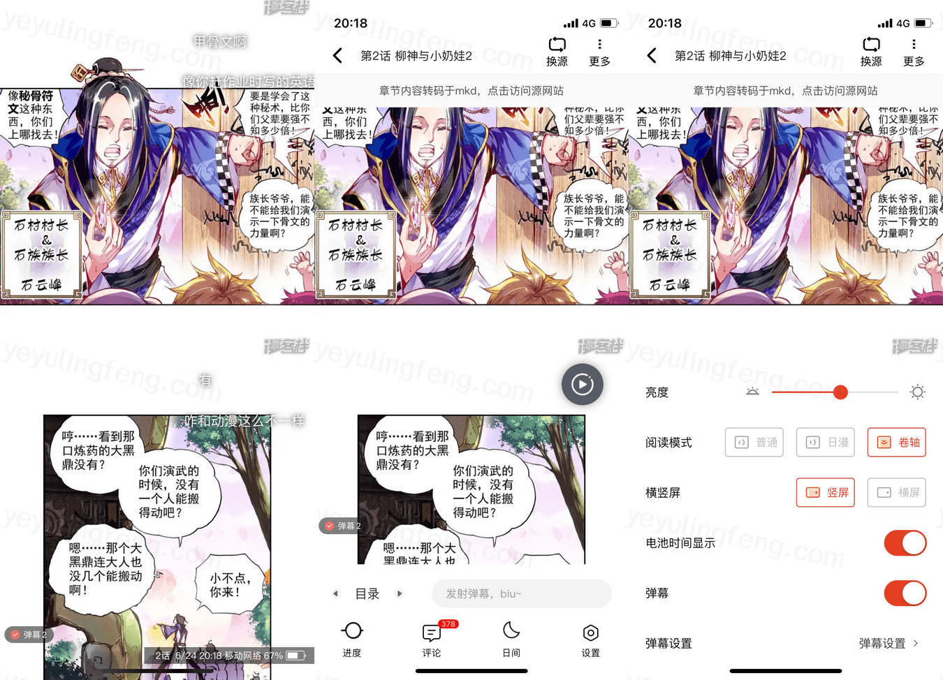 漫画预览页默认将评论内容以弹幕的形式在屏幕中滚动,部分弹幕存在剧透成份,不喜欢可以在阅读设置中关闭