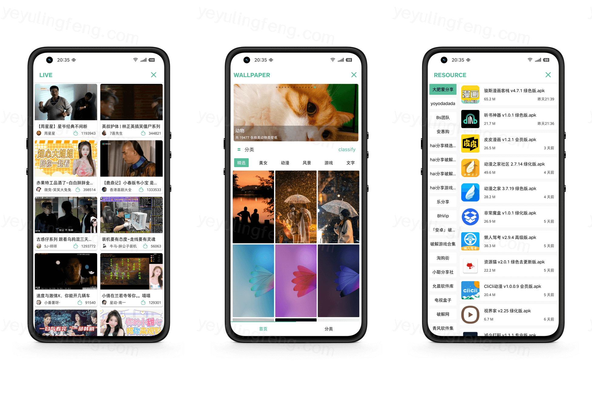 此外还支持直播、壁纸、资源下载等功能,由于功能比较多这里就不过多介绍了,感兴趣的文章底部获取链接下载体验吧