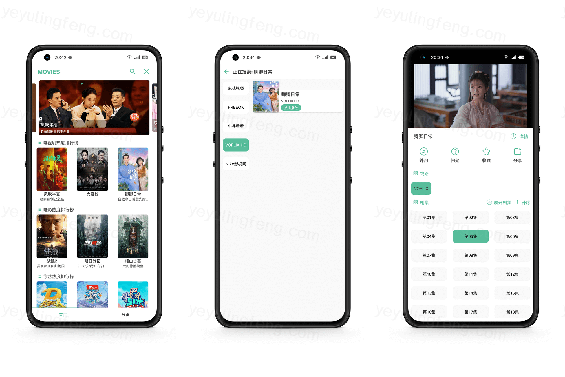 如果 App 内置的资源不够看,还可以解析各大平台资源,输入影视名搜索,选择解析线路即可播放。