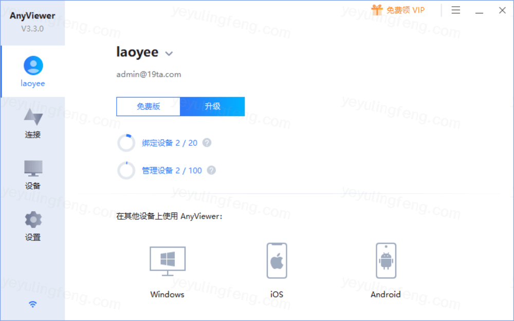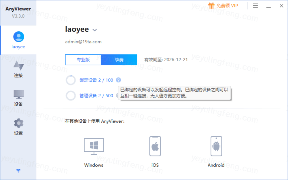 免费用户可以绑定20个设备,管理100台设备,个人和家庭是永远免费使用的,就是不能使用最高画质,需要专业版解锁