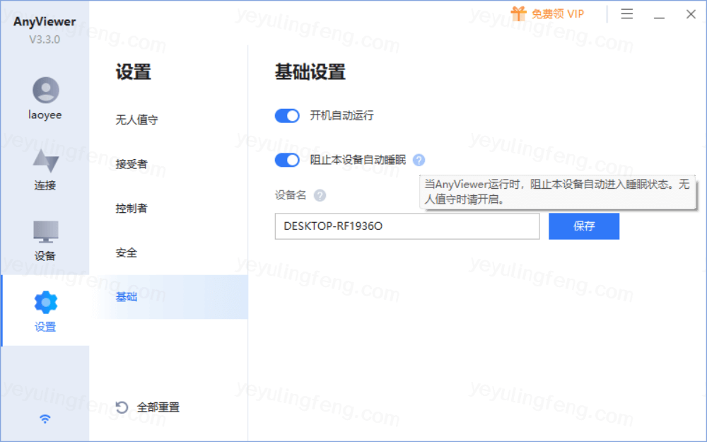 如果有长期的远程场景,可以设置软件为开机自动运行和阻止设备自动休眠,这样被控的电脑就算重启后也能正常远程控制操作了