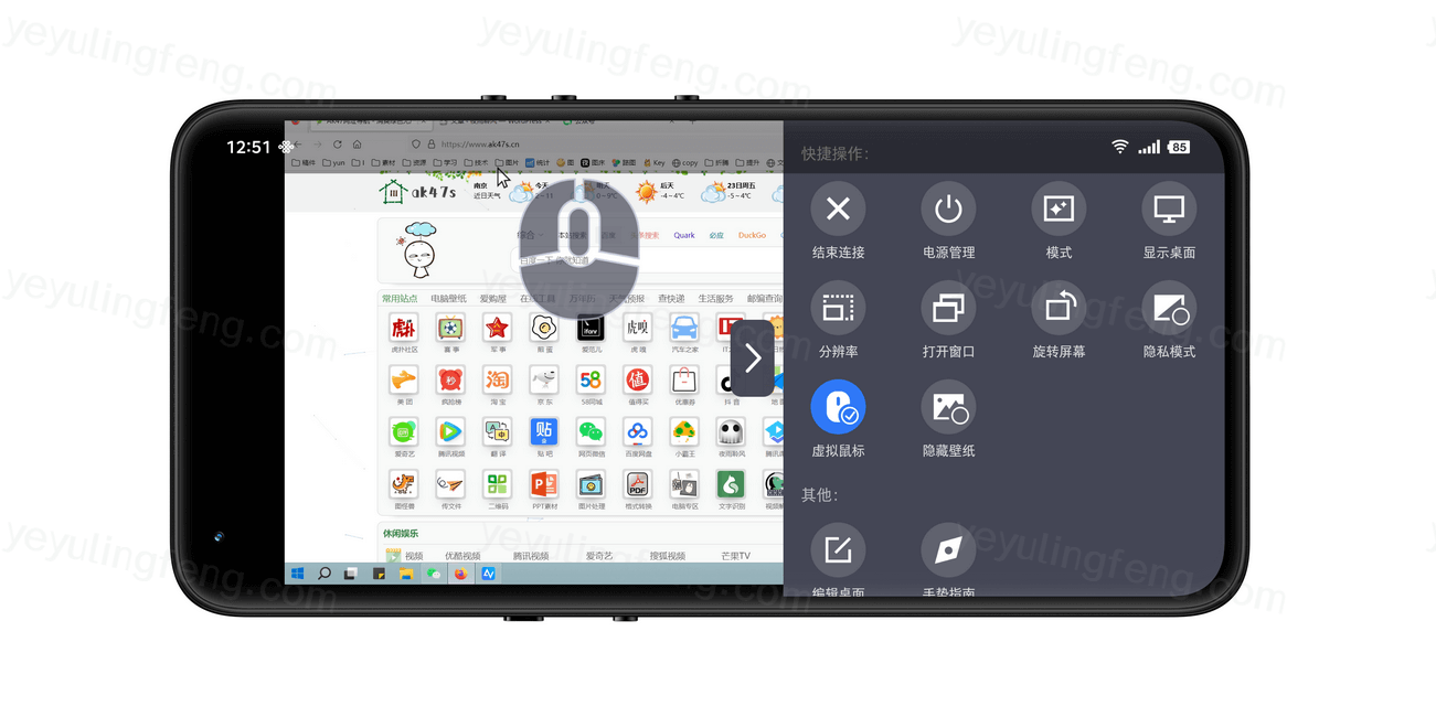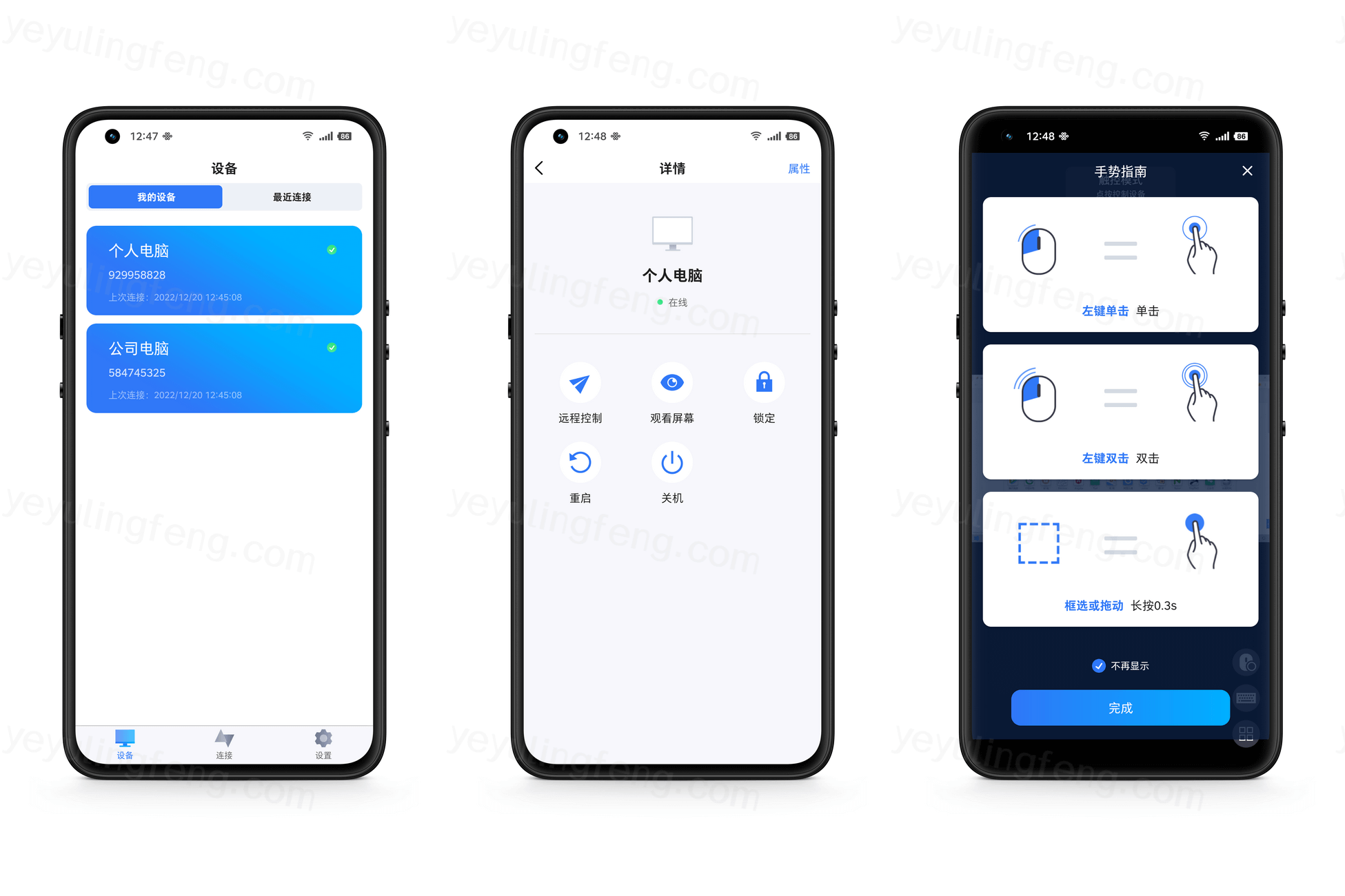 目前仅支持手机控制电脑,不能反向控制,也不支持手机控制手机