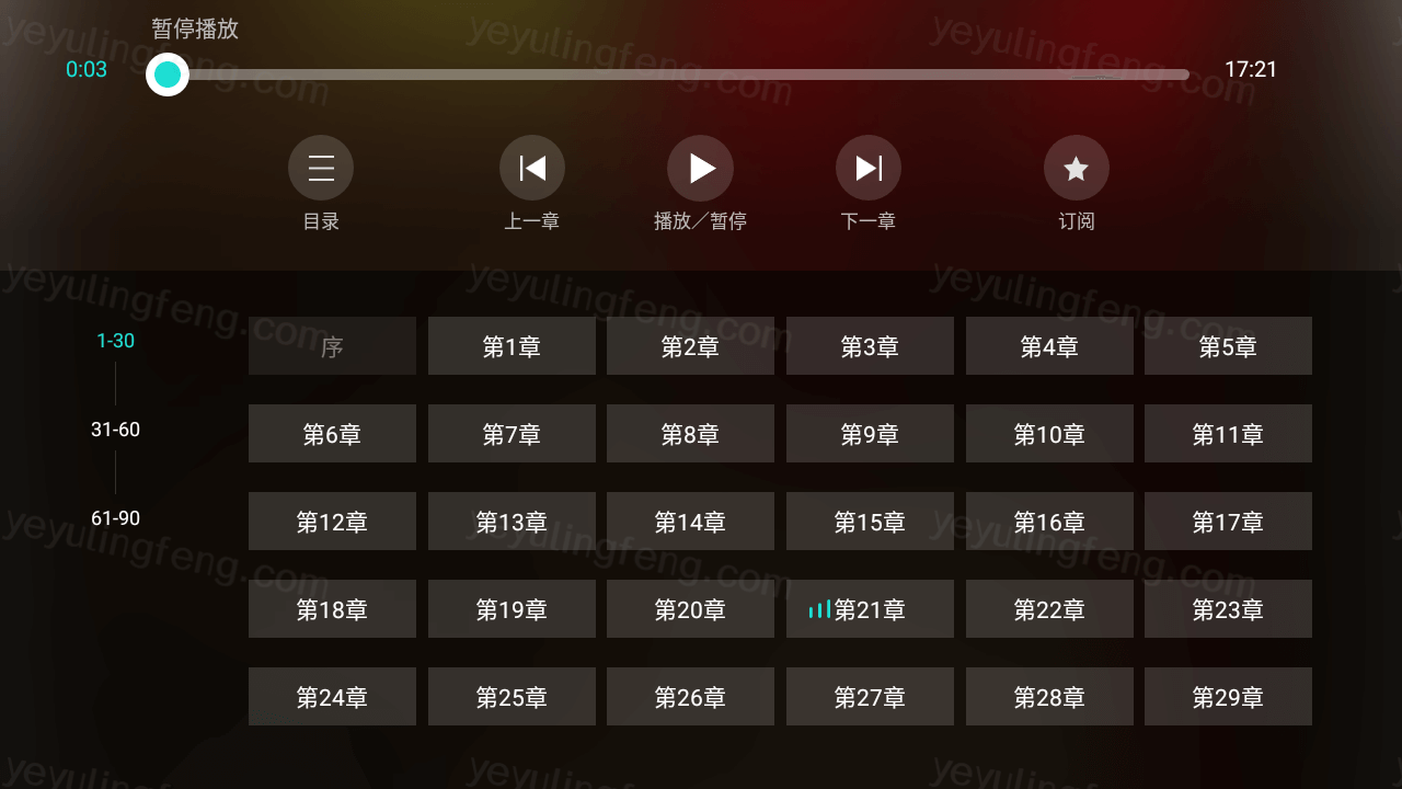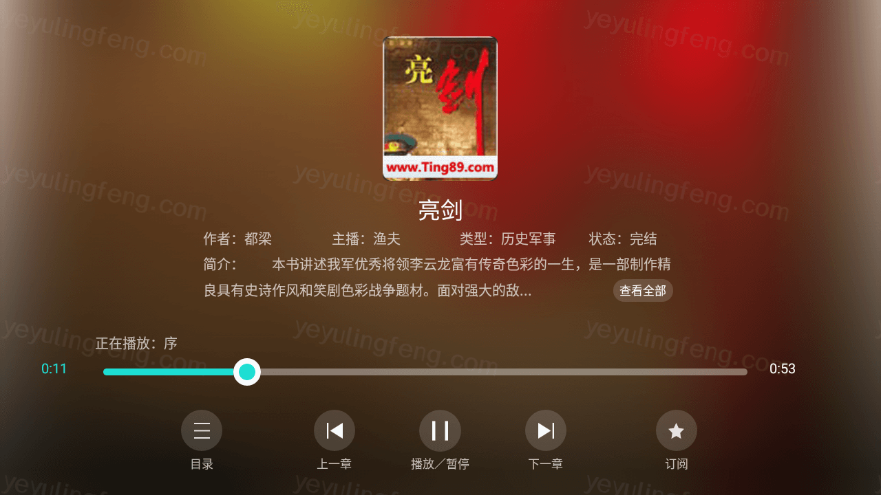 点开一个排行较高的作品播放,音质还是非常不错,播放过程流畅可选择目录和切换章节