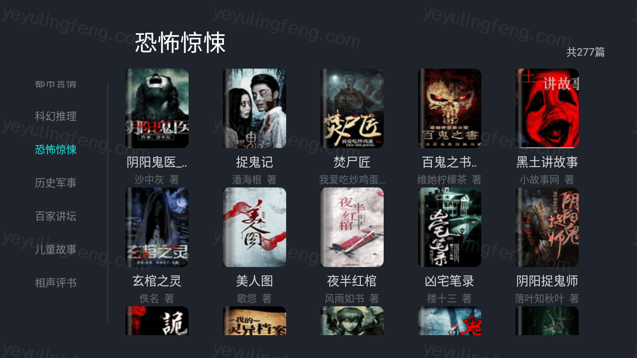 有声读物内容就比较广泛了,分类较多,玄幻武侠、相声、历史、恐怖等恐怖类型的都有收录