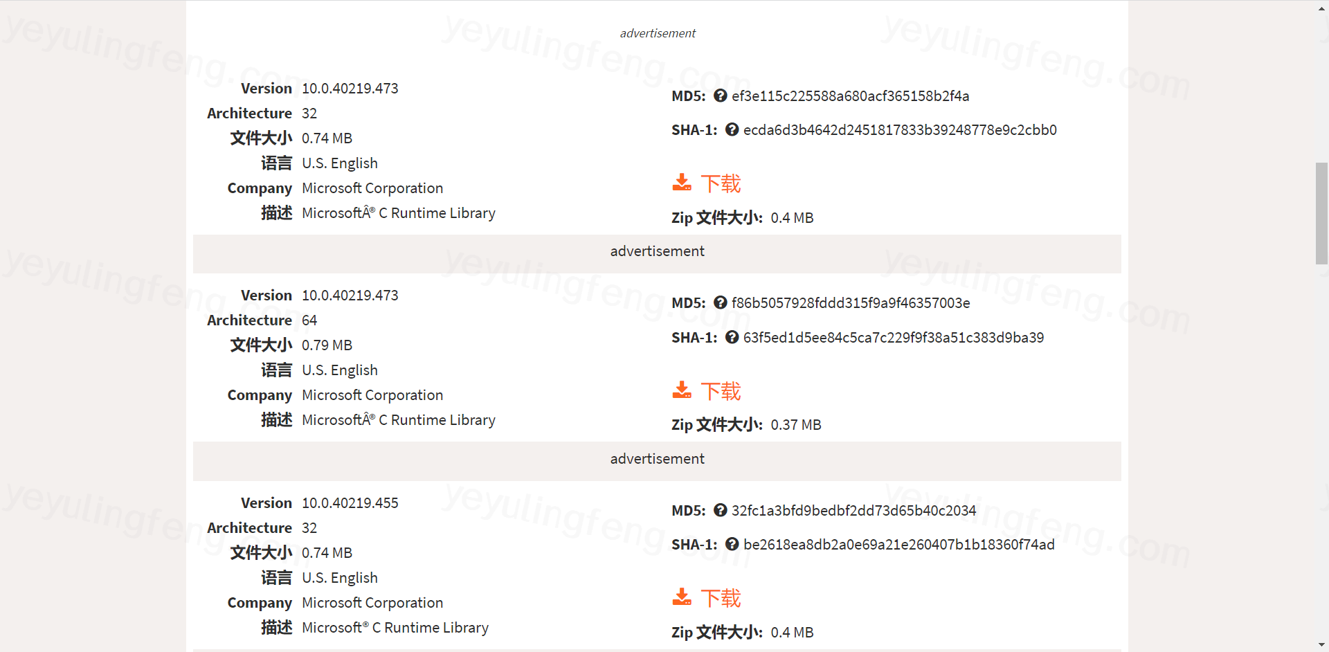 搜索结果点击进入后往下翻就能看到相关的dll文件描述信息以及下载地址