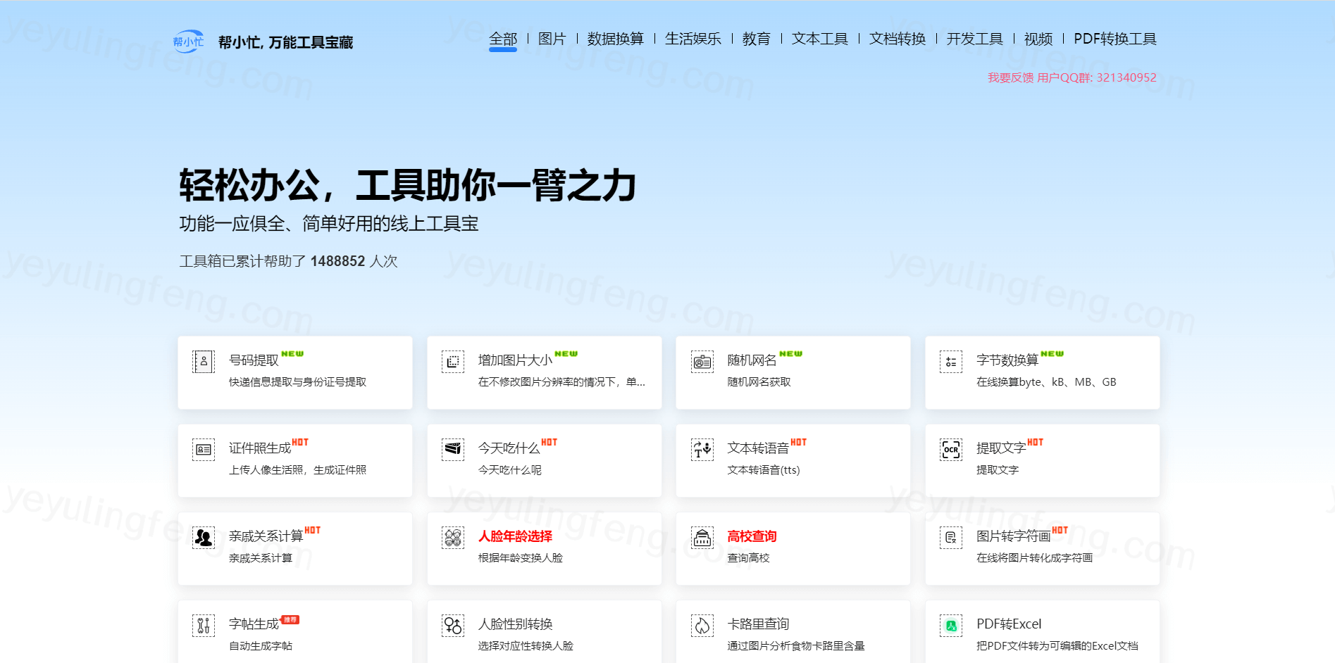 帮小忙在线工具网为腾讯出品,域名也是QQ.com的子域名,刚上线不久所有的功能都是免费的,部分功能均处在限免状态