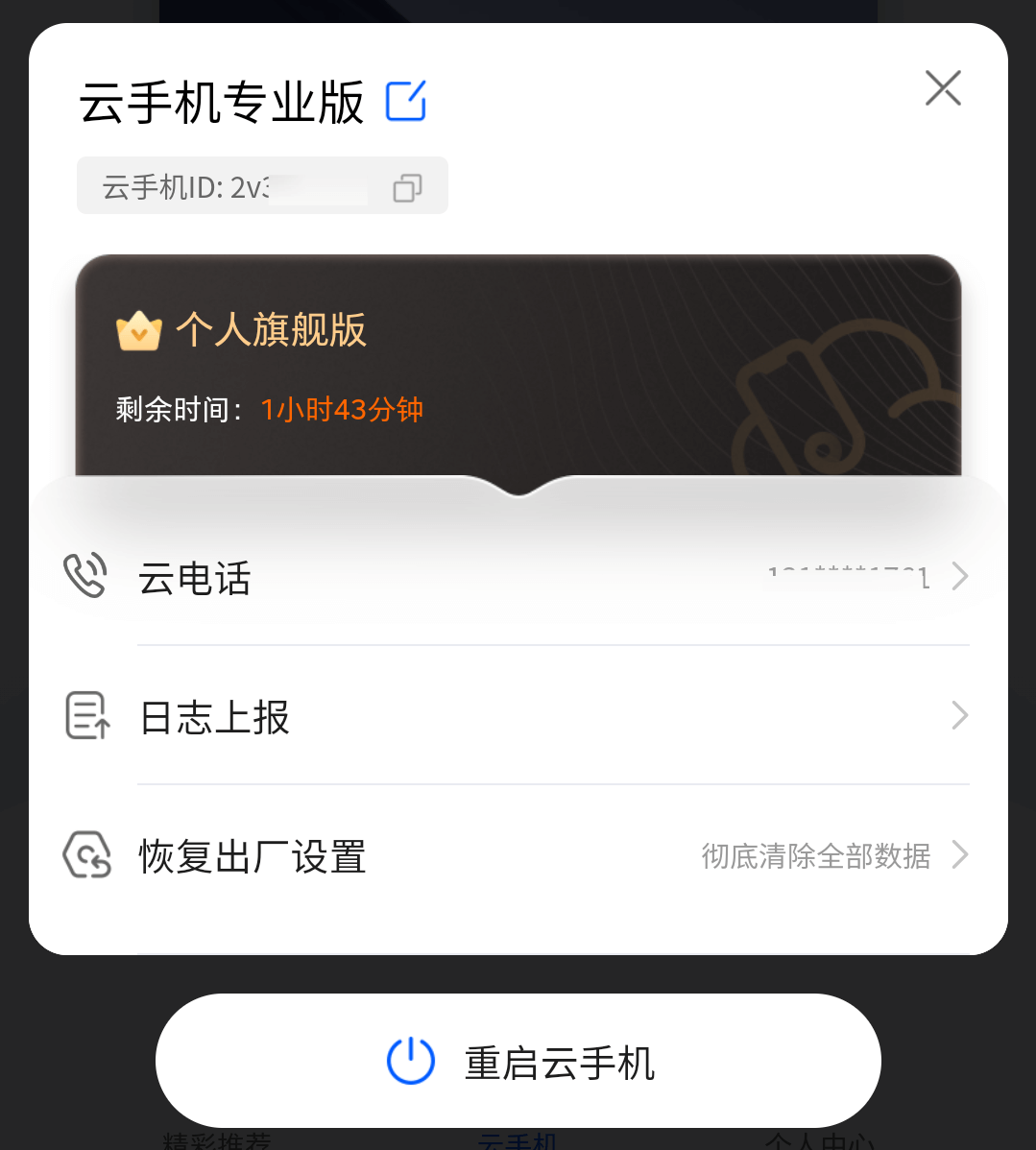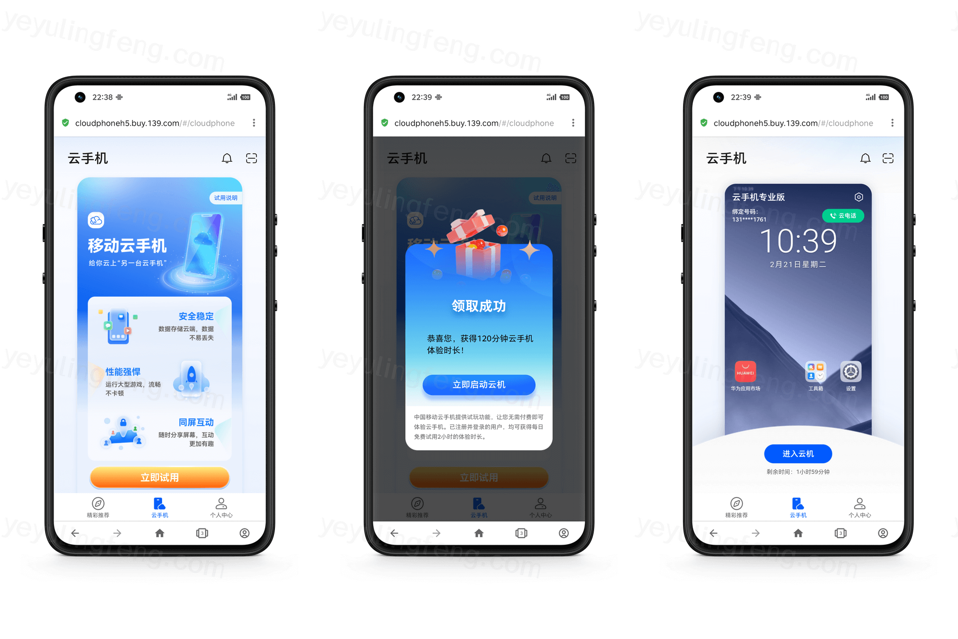 目前支持客户端、网页端使用,每天可直接领取2小时,且领取后就开始计时到时候后清除数据收回云手机,每日0点更新试用时长