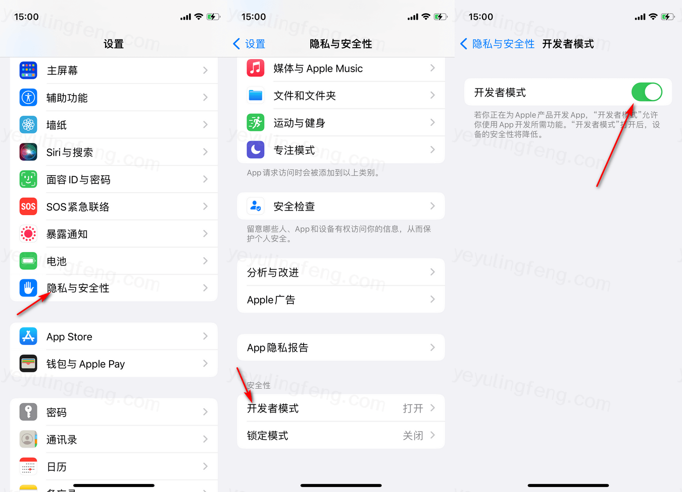 如果iOS版本较高,请按照下图开启“开发者模式”