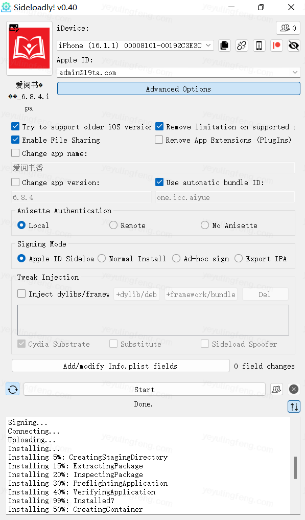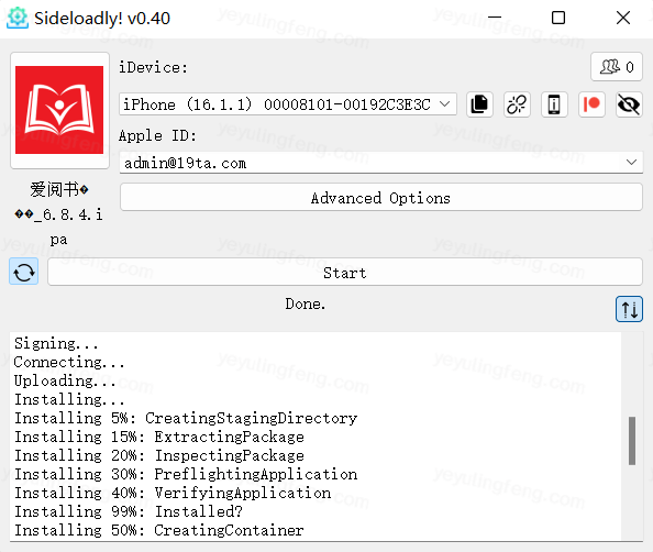 7天后也就是自签安装的软件到期后,只需要手机连接电脑,打开Sideloadly,ipa文件拖到Sideloadly窗口,然后点击“Start”等就行了