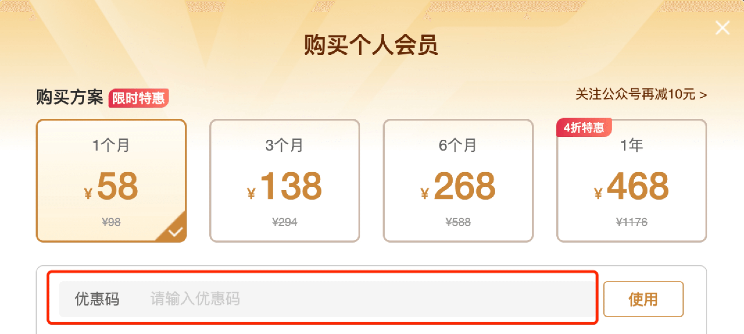 老夜也为大家申请到了专属福利,购买会员时输入优惠码,点击使用,即可获得专属优惠
