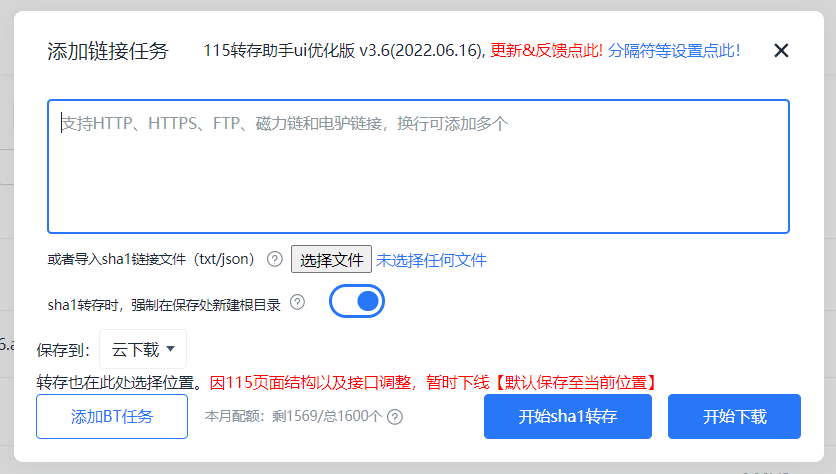 安装脚本之后再使用115下载功能就支持sha1转存了,基本上告别了资源失效的问题,这个脚本功能非常多,不做过多介绍,懂的都懂