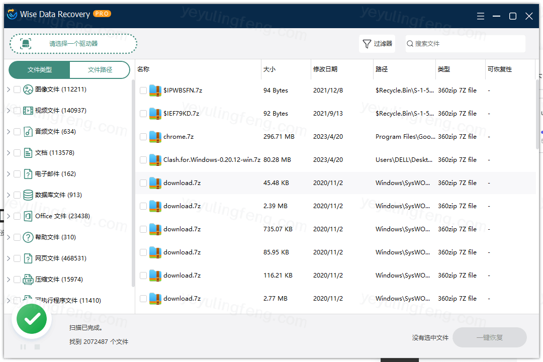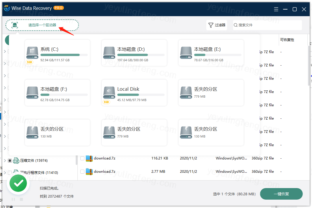 专业的恢复工具有很多,简单好上手的还是不多见,Wise Data Recovery就是比较推荐的一款,接下来老夜就拿自己的电脑祸祸,给大家测试工具实用性