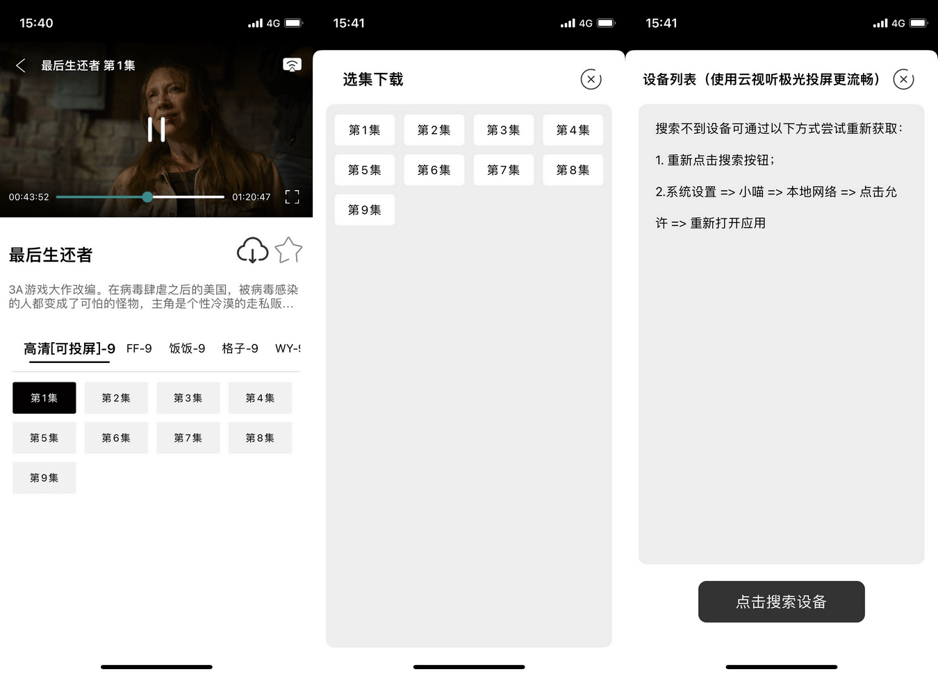 难得播放支持下载和投屏,播放时可以切换线路,不同的线路质量以及加载速度都可能不一样,如果播放体验不佳尝试其他线路即可