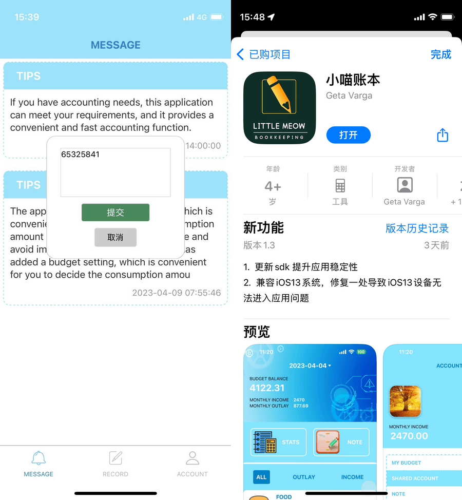 软件为伪装上架,因此你去App Store搜索以及下载到的均是一款记账类的App,不要慌并没有下错软件,根据软件说明,在首页输入反馈信息“65325841”就能解锁了