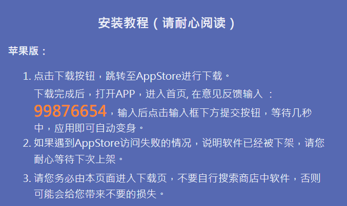 下载完成后,打开APP,进入首页, 在意见反馈输入 :99876654,输入后点击输入框下方提交按钮即可进入页面