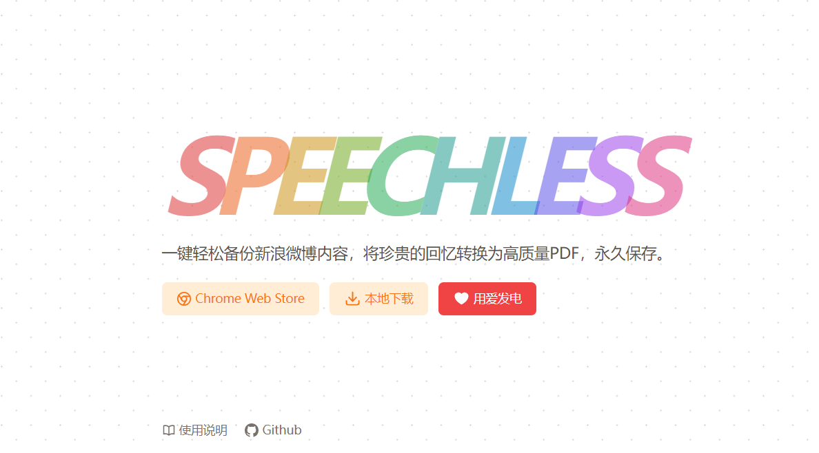 拓展获取方式直接打开Speechless官网即可,国内用户请点击“本地下载”,条件允许直接Chrome应用商店在线安装“Speechless 微博备份”