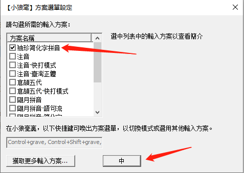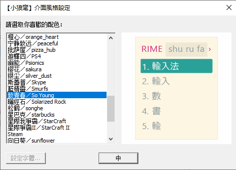 选择输入方案后继续点“中”就能选择输入法主题了