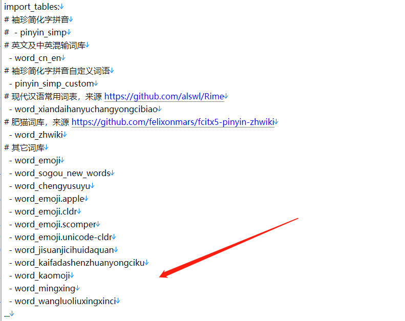 导入的词库配置都在“pinyin_simp.main.dict.yaml”文件中了,为了方便词库文件区分,这里统一以“word_”开头命名词库文件