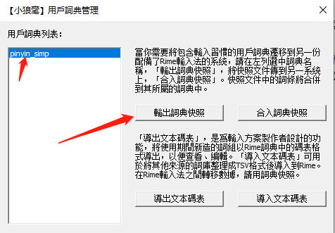 由于Rime属于单机版程序,自然是没有云同步词库等功能的,不过可以直接将词库导出到另一台设备去,非常的简单粗暴