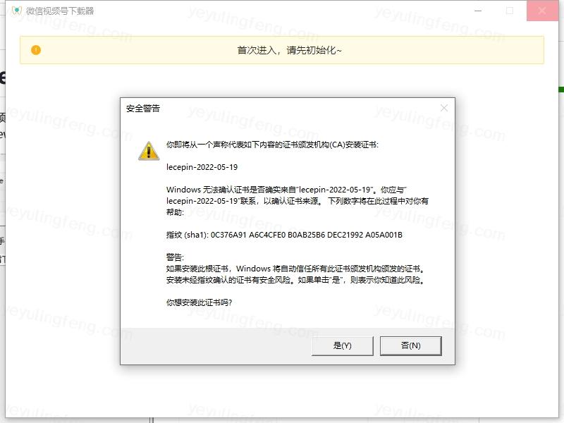 首先打开软件,点击初始化,内部采用代理拦截请求识别,所以本软件需要安装证书及自动开启代理(当然这些都是自动执行的,无需手动操作)。关闭此软件时会自动清除代理信息,不影响使用