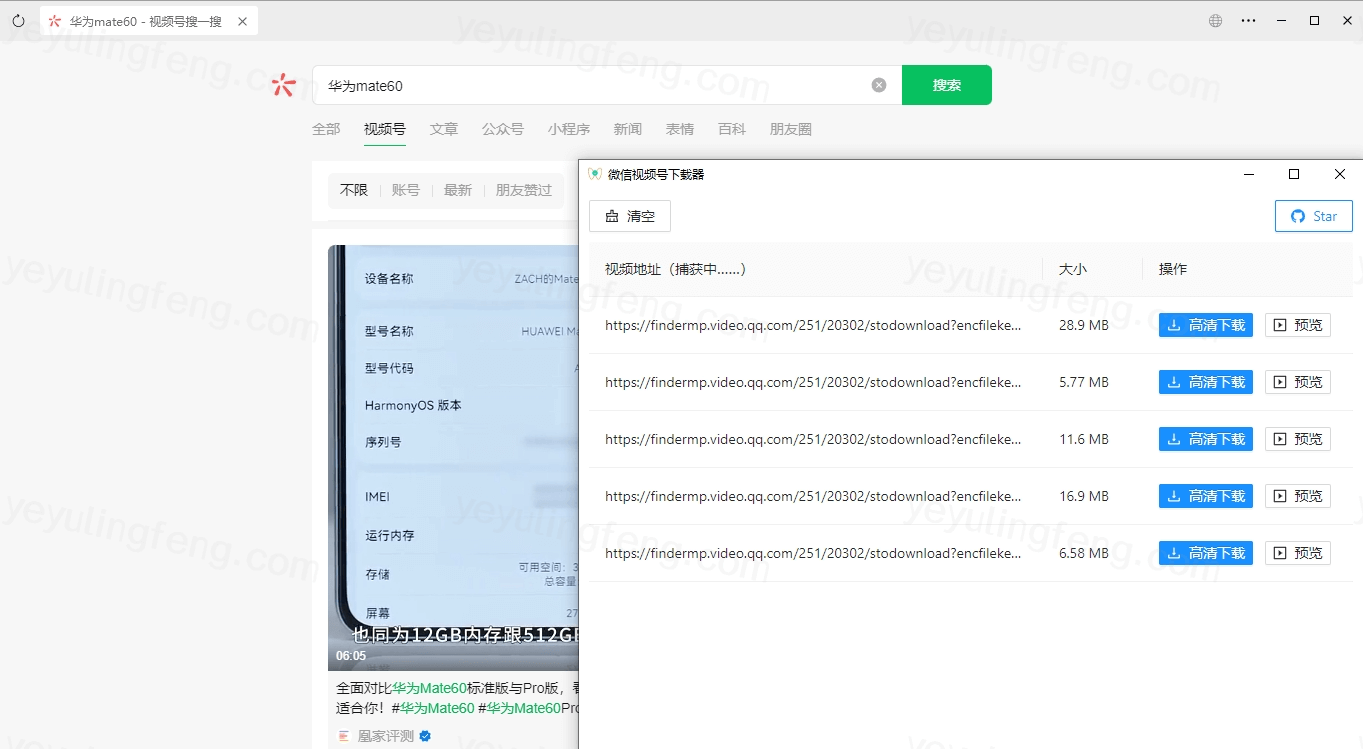 在搜一搜页面的视频可能比较多,可以事先先清空在滑动定位需要下载的视频,也可以直接在捕获列表中一键预览
