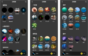 - 拥有白噪音助眠,其中包括:催眠曲、脑波音乐、虫鸣鸟叫、八音盒、钢琴曲、提秦、海声、雷声、自习室专属、婴儿安抚睡眠、流水声、3D耳朵按摩等上万首