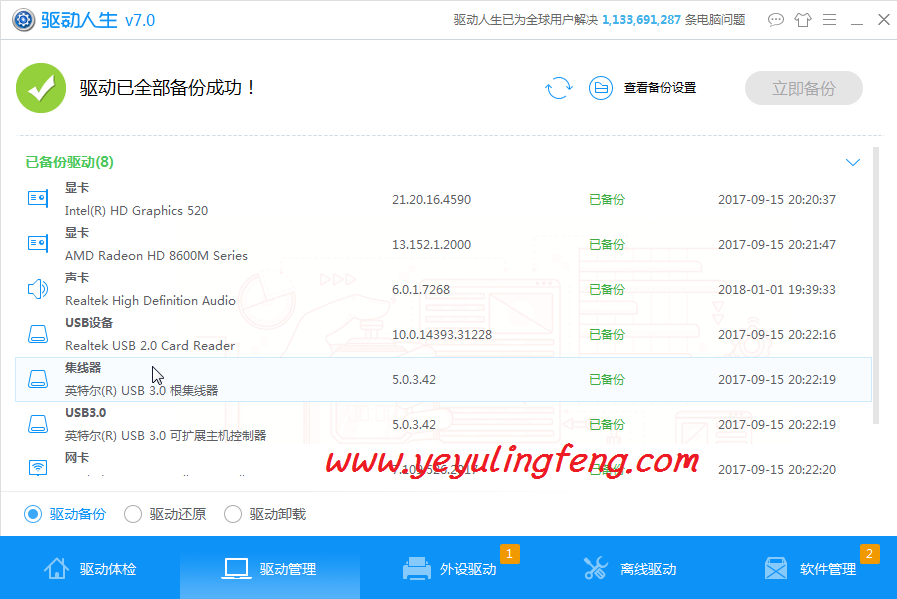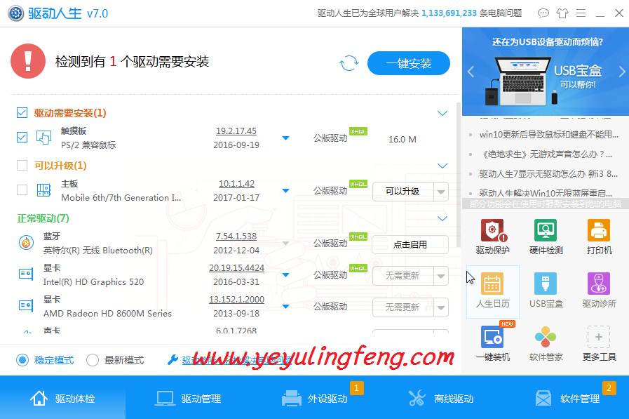 驱动人生是一款PC端的免费驱动工具,能够实现智能检测硬件并自动查找安装驱动,为用户提供最新驱动更新。在这里还是要温馨的提醒一句,驱动不要过多的折腾,电脑处于稳定状态时尽量不要更新驱动,尽量使用官方的驱动包。作为一个老牌电脑驱动工具,常年的技术积累驱动的支持率高达99%,支持一键安装的同时还可以对旧版驱动进行备份管理,让用户有“后悔药”可吃。驱动人生从版本6之后,界面较之前有了较大的改动,但是随之而来的就是各种广告弹窗了,弹窗倒是无所谓,火绒管家直接一股脑拦截了,但是只要在软件页面点击软件管理直接自动就给你安装上了,体验感大不如前了,这次老夜直接给大家分享个绿色免安装版本,去除了所有的广告以及捆绑行为,干净清爽。至于另一款装机率跟驱动人生不相上下的驱动精灵,老夜也不想多说什么,金山的东西以后打死都不会碰了,电脑的IE还被毒霸导航劫持着至今都毫无办法。