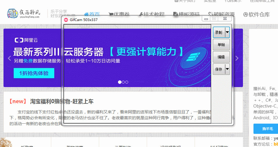 GifCam是一款轻量级的GIF动画制作工具,算是老夜一直常用的工具之一了,之前站内的测试GIF图均是出自GifCam之手,最近版本又更新了,新版本支持AVI视频的导出,也就是可以用这款工具进行录屏操作了。录制后的GIF动画可以逐帧编辑绘制,录制时可以鼠标拖动窗口边缘选择录制区域,十分的方便快捷,软件仅2M不到的大小,而且是单文件版,无需安装,放到桌面点开即可录制你需要的gif文件了。有些时候三言两语说不清的东西,可以直接录制一个gif图片供演示,大大提高了办事效率,对于文章排版,gif比静态图片更具有优势,几张连续的图片都不如一张gif图来的直接干脆,就是gif录制的时间不宜过长,毕竟占用内存还是挺大的。