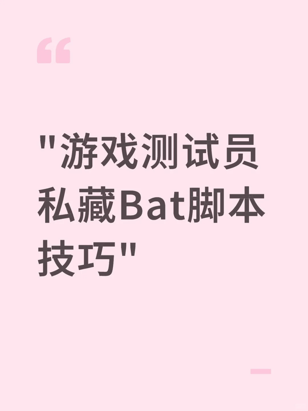 # Bat脚本在Windows游戏测试中的骚操作\n \n刚入行做游戏测试时,组长扔给我一个.bat文件说:\”把这玩意跑一遍,游戏崩溃了记得截图。\” 当时连Bat是啥都不知道,现在回想起来,这玩意儿简直是Windows测试的瑞士军刀。\n \n## 1. 暴力但有效的批量启动测试 游戏兼容性测试要反复开不同分辨率,手动改设置太蠢。后来写了这么个脚本: 坑点:必须加,不然所有进程会同时启动。有次没加直接把测试机搞蓝屏了…\n \n## 2. 自动化截日志的神器 遇到崩溃时要抓DXDIAG日志,手动操作要点七八步。后来发现可以用: 关键细节: 参数指定输出路径 给生成留时间 必须强制结束进程,否则窗口会一直挂着\n \n#3. 文件监控的土办法 有次策划说资源更新后角色贴图闪烁,但不确定哪个版本出的问题。用Bat+计划任务搞了个监控: 注意: 是二进制比较 时间戳 应届生求职