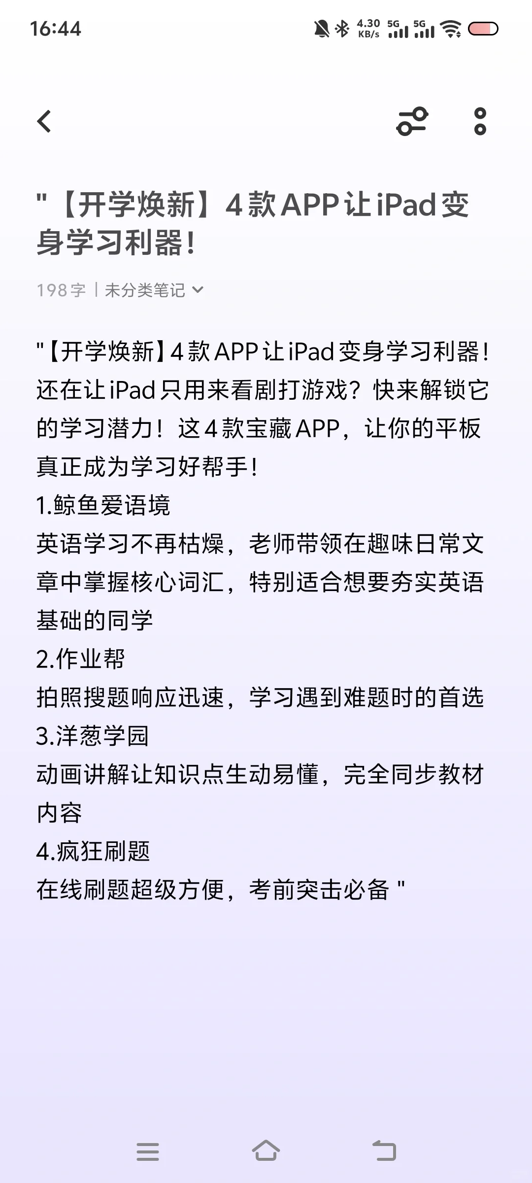 本文最后更新于2025-09-04,某些文章具有时效性,若有错误或已失效,请在下方留言或联系老夜。 “【开学焕新】4款APP让iPad变身学习利器! #提高学生学习兴趣#宝藏软件 #宝藏APP\n给小初高学生推荐一下好用的学习软件