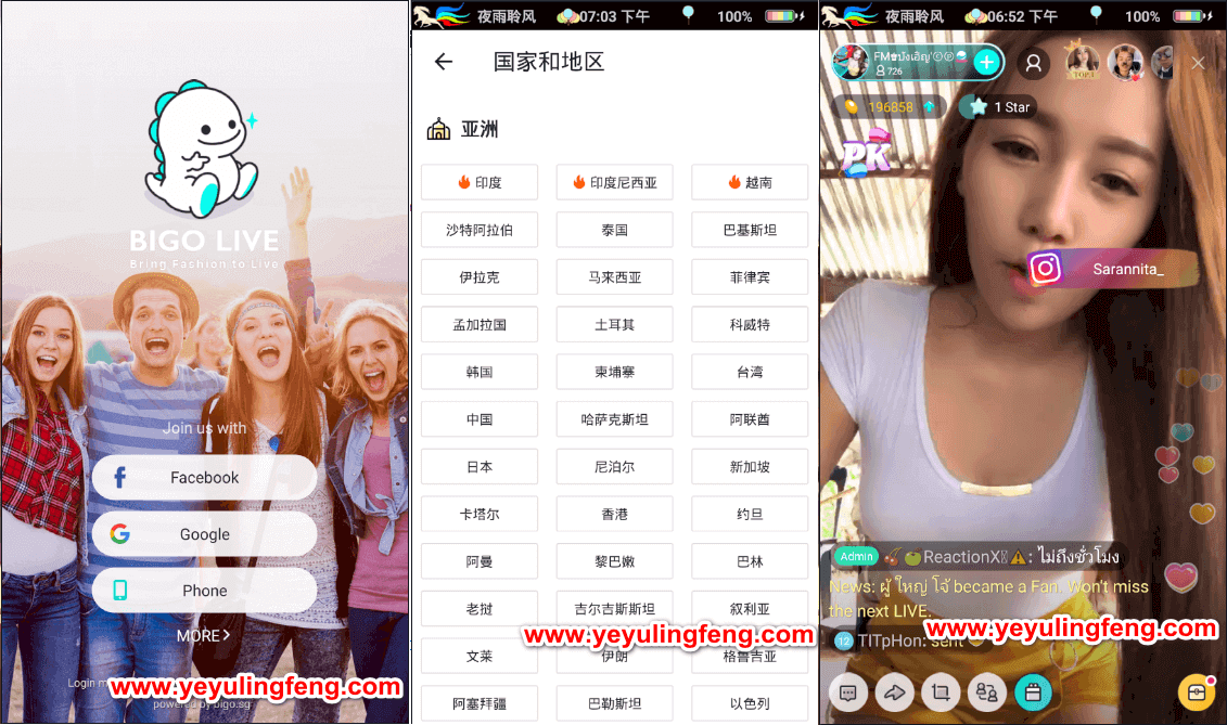 BIGO LIVE是一款汇集海内外的直播类APP,BIGO LIVE总部位于新加坡,背后的股东包括新加坡BIGO Technology、中国YY欢聚时代、欧洲最大媒体集团博德曼等。软件使用人群非常的广泛,七大洲八大洋的几乎都有了,看够了国内的小姐姐不妨下载BIGO LIVE看看歪果仁的趣味日常。软件貌似没有中文版,一些页面还是英文,并且需要facebook或者Google账号授权登陆才能进入软件,当然也可以用手机号注册。老夜体验了一番,主播大部分都是东南亚的,当然其他国家也是不少,各个国家频道溜达了一圈发现还是泰国的质量高点。虽然听不懂主播叽叽喳喳在说什么,但是奔着女主播去的老夜丝毫不在意这些,不一样的异域风情真是让人流连忘返。软件虽然是国外的一款直播软件,不知道是不是有YY欢聚时代的参与,国内打开的速度非常的快,不是cn2直连就是有国内节点了。