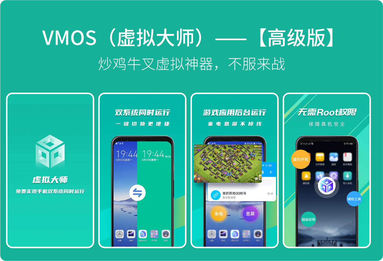 - 虚拟系统支持游戏/应用后台运行,不影响前台操作,手机来电、息屏也不会掉线,