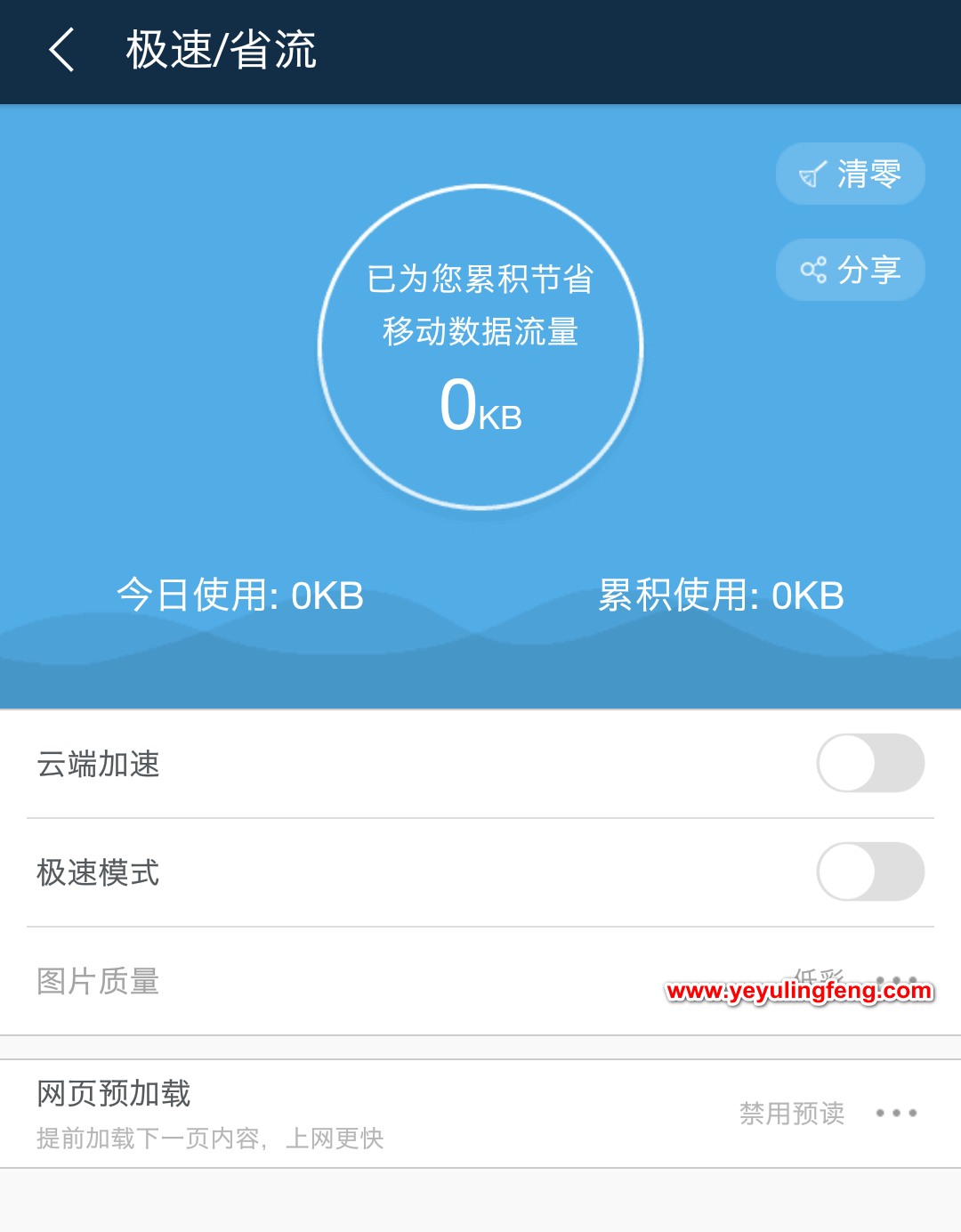 重点来了,解决办法也是十分的简单,打开UC浏览器,设置中找到“极速/省流”选项,点击进入,然后把云端加速关闭就可以了,具体操作如下图: