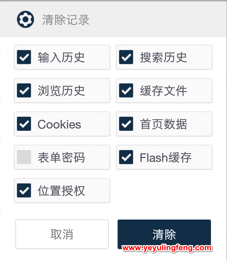 按照以上操作完成后先不要急于测试了,还得执行最后一步,就是清除之前的浏览器缓存,按照下图老夜所勾选的进行相应的处理就大功告成了。