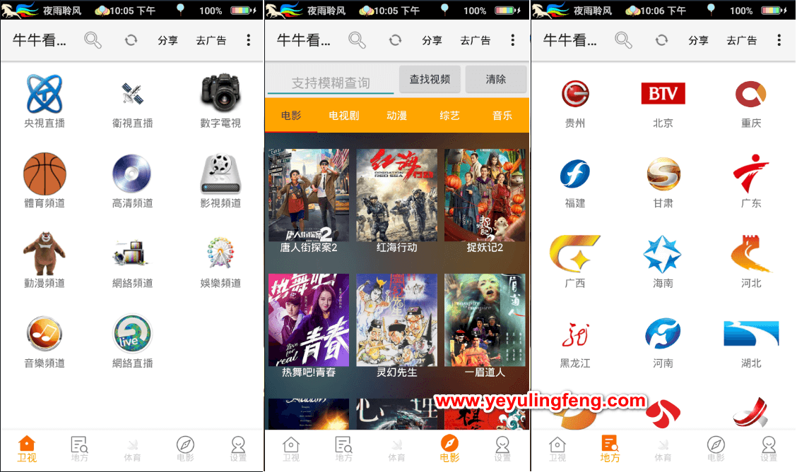 各地卫视、地方台应有尽有,比如湖南卫视、浙江卫视、东方卫视。