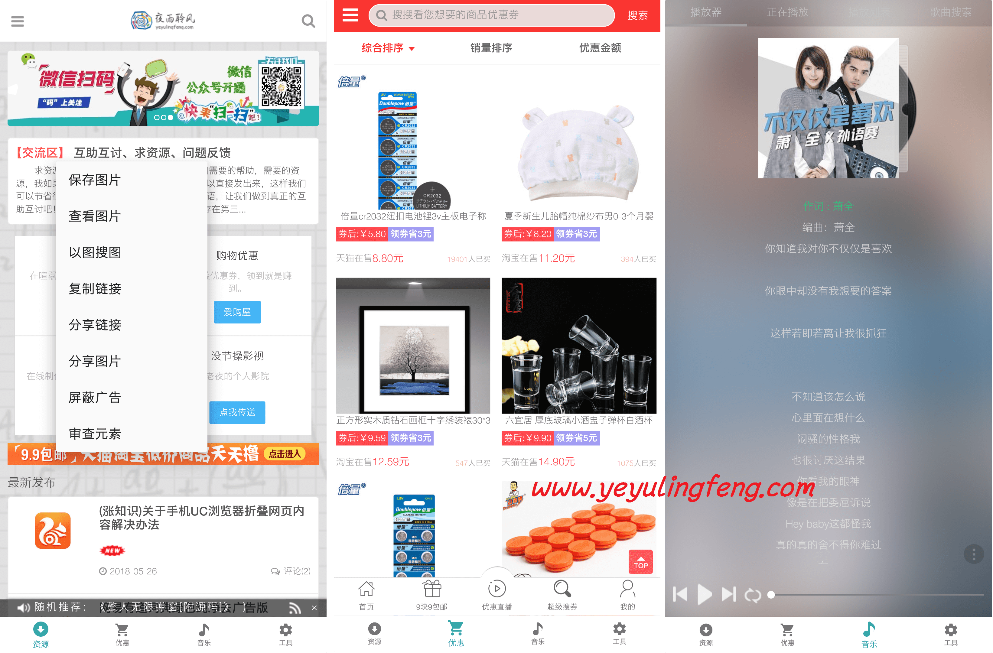 以上功能界面截图均是这款2M不到的客户端就能完成的,是一款汇集资源浏览、购物领券、免费听音乐以及更多好玩的工具类APP。因为是网址打包,网站日后改版也无需升级APP什么的,非常适合长期使用,如果以后更换域名什么的估计就就得需要重新生成APP了。关注次文章老夜会及时更新!