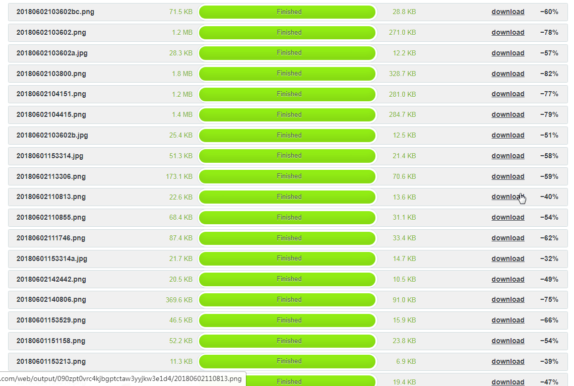 压缩效果这里就不详细说明了,看图看图。tinypng支持一次同时压缩20张小于5M的图片处理,支持大部分图片格式的处理(除了GIF以外),如果图片数量较多或者图片较大且都是GIF格式的话就需要购买套餐了,当然免费版的足够个人使用了。