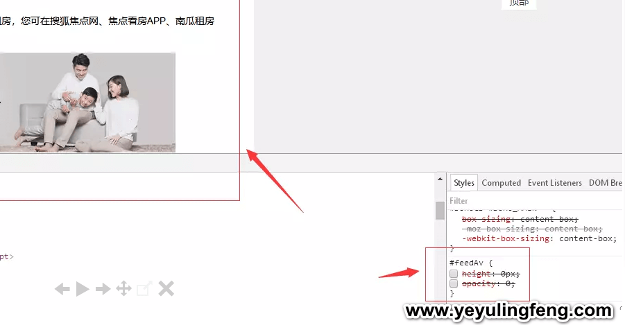 又是半天的废话,目前老夜得知还是有很大一部分的站长还在使用畅言的,或许一直在等他醒悟然后乖乖的把广告撤了!然而这是不可能的,这里带着大家随意的分析一番,首先我们打开带有畅言评论的一篇文章,然后F12或者ctrl+shift+i来查看当前页面的属性,很不巧,这里一不小心就找到了广告的css样式了,就是这个#feedAv属性,所以接下来只需对#feedAv下手就行了。