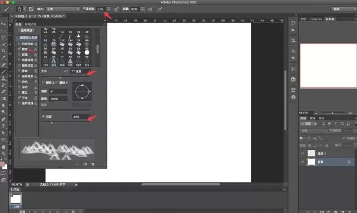 (4)选择一个形状,单击完成,然后回到画笔面板设置画笔的大小、间距、散布以及不透明度、颜色等: