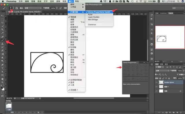 PhotoShop ,在 PhotoShop 顶部菜单栏: 窗口 > 扩展功能 > Divine Proportions