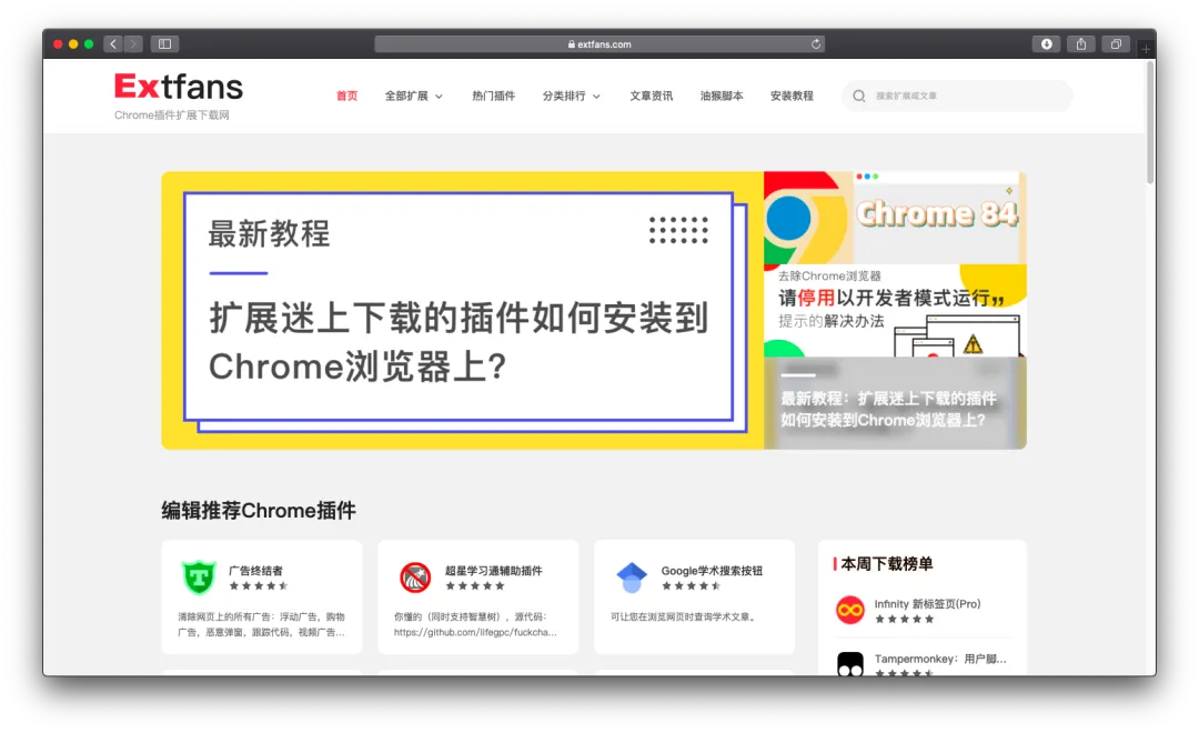 Extfans[1],一个国内的Chrome插件下载网站,也是我最早接触的插件下载网站。