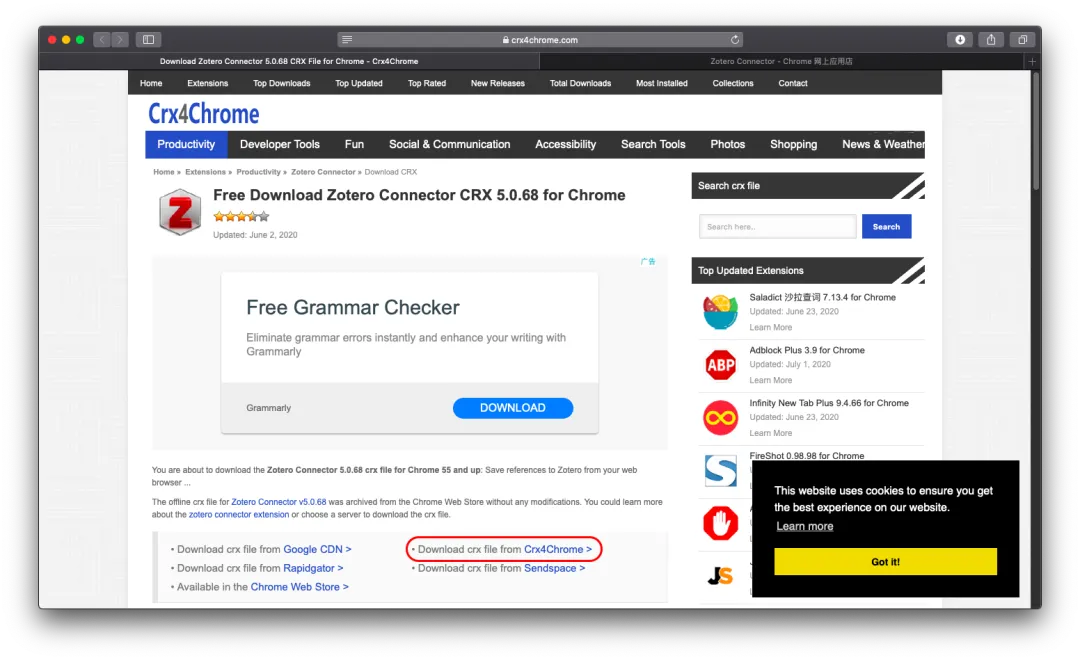 还记得前两天我在推文Zotero「工具包」已备好,请使用!中,向大家分享了Zotero Connector插件的.crx文件吗?