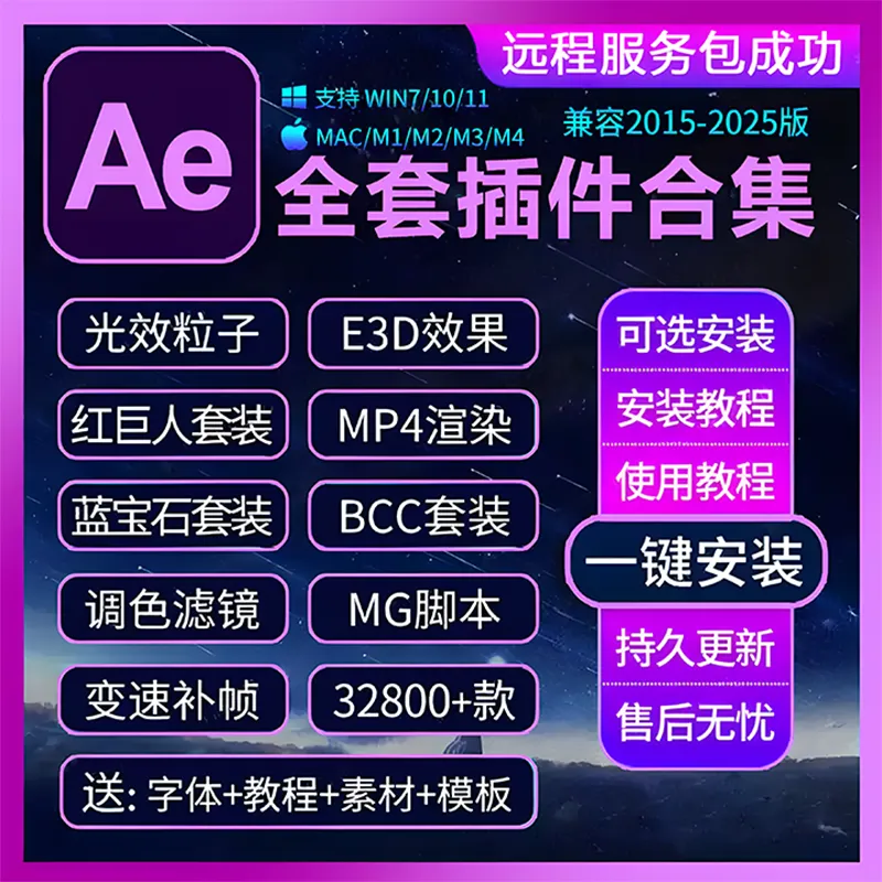 今天给大家带来一套AE全套插件一键安装包,可以说AE安装了这一套插件,以后再也不缺插件用了!支持最新2025版.
