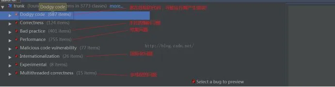 FindBugs 它用来查找Java代码中存在的bug。它使用静态分析方法标识出Java程序中上百种潜在的不同类型的错误。