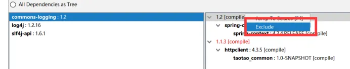 选中右键就可以 Exclude 啦,想用1.2就把其他版本的Exclude掉,想用1.1.3就把其他版本的Exclude掉,很方便。