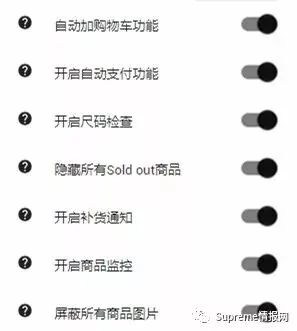 3、如果以上都不可以,那么我建议你只选择开启插件的个别功能,比如自动帮你选尺码,其他的操作你自己来,或者只选择自动填表,其他的操作自己来,等等,拆分功能使用,反正每一个功能都能帮助你提升不少竞争力,找到自己合适的套路就行了。如果全部组合都尝试过了,还是手动买可以,但是用插件不可以(这种几率极低,低到不可能),那么就手抢吧,你和我无缘分呐。