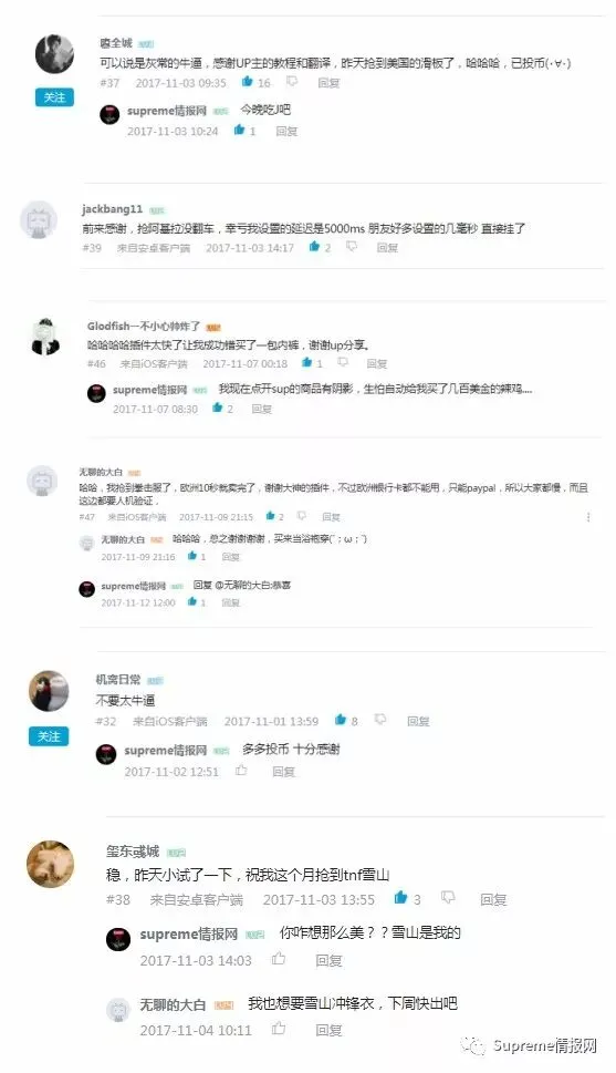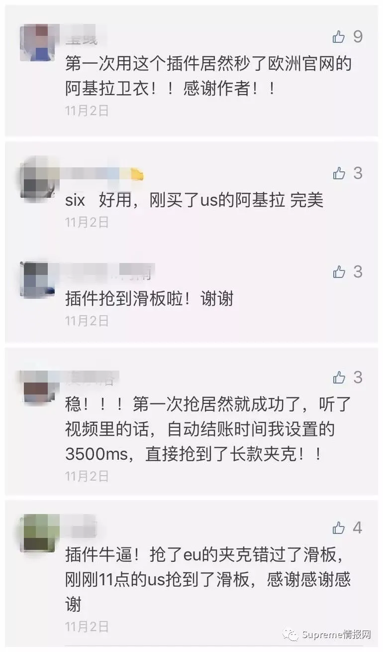 有粉丝成立了N个插件使用交流群,还有直播的up主用我们的插件抢购Supreme来直播,非常的欢乐,由于我个人的精力有限所以没有加入他们,但是还有无数其他热心朋友的帮助。在此十分感谢他们。