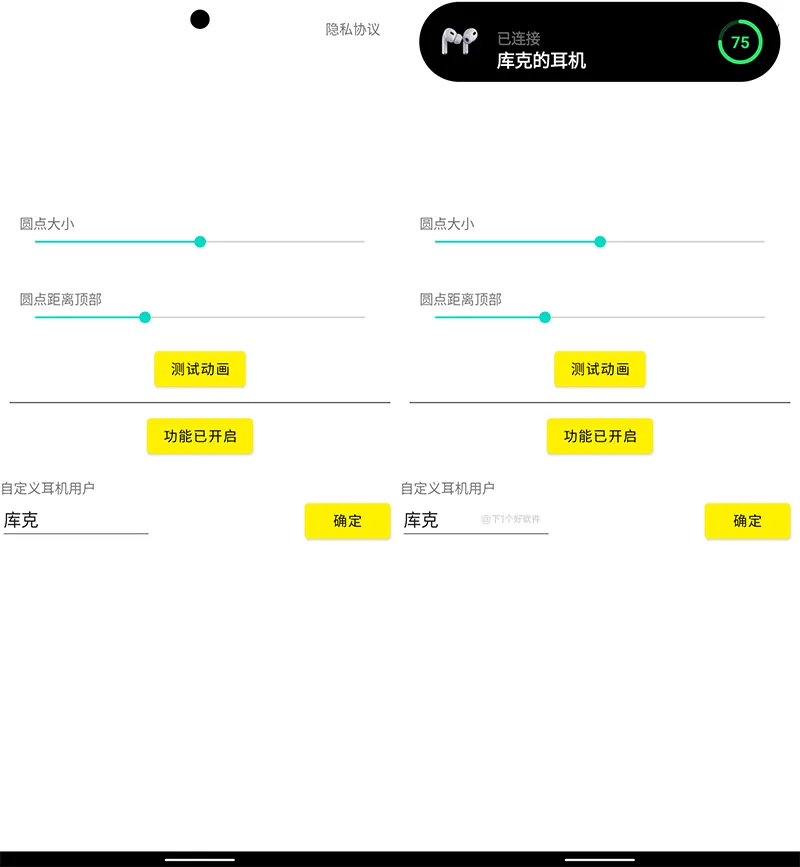 这款「灵动鸟」是第三方应用,复刻了 “灵动岛” 设计,模仿了充电和耳机连接的动画,但是因为没有第三方 APP 的适配,所以只能体验下效果。另外挖孔大小位置不能自动和手机适配,你可以手动调整设置。