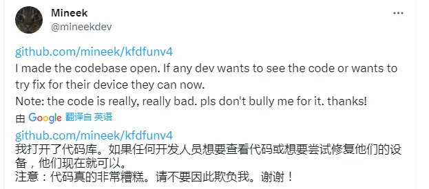 就在刚刚@mineekdev大佬完全开源了它的项目,欢迎更多大佬补充适配这个项目,这格局一下就打开了!