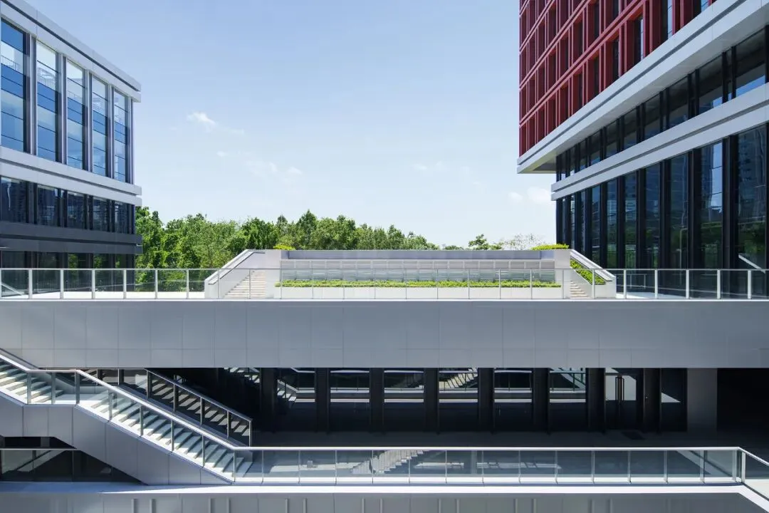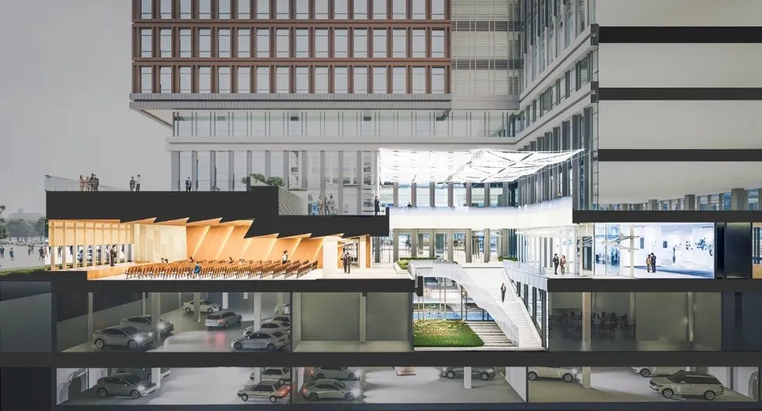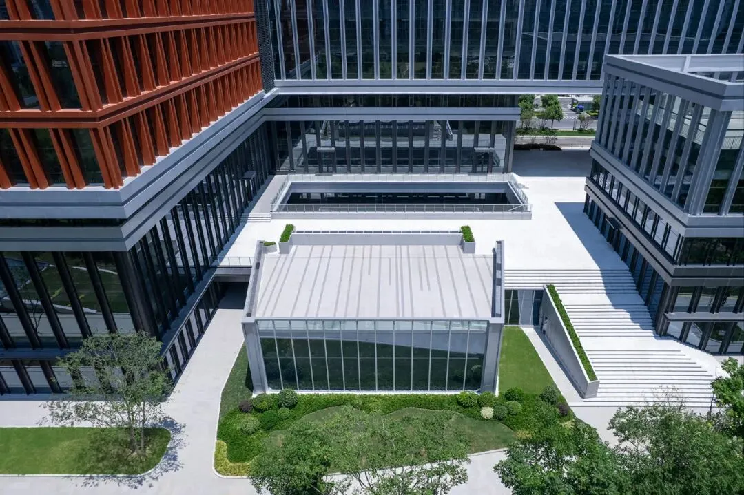出现边施工边升级的场景,体现的是业主在适配真实需求时候所做出的主动应对。设计团队在遵从原规划逻辑的前提下,通过对于底层支持性功能的新设、界面层次的升级、景观的联动等手段一并提升项目的服务性基础设施。建筑师跳出了原先给定的空间框架,提升了园区的整体体验,也为未来的产业发展提供了坚实的基础。